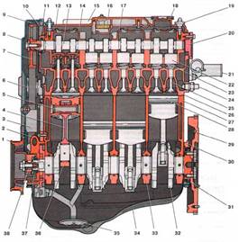 Рис.1 Двигатель ВАЗ 2111 (продольный разрез)
