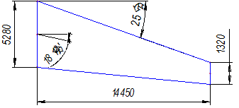Так как крыло данного самолета стреловидное и угол по передней кромке более 15° (рис. 1), вводим эквивалентное равновеликое по площади прямое крыло, и все расчеты проводим для этого эквивалентного крыла. Прямое крыло введем путем поворота стреловидного так, чтобы прямая проходящая по половине хорды прямого крыла была перпендикулярна оси фюзеляжа (рис. 2). При этом размах спрямленного крыла