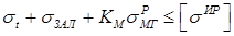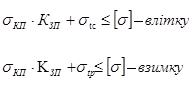 З урахуванням залишкових напружень в головці рейки і прийнятого запасу міцності.Км = 1,3, згідно з (7.3), допустиме зниження температури рейки по відношенню до температури закріплення можна визначити за формулами