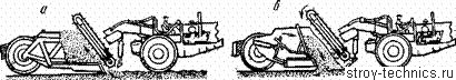 Рис.4. Принципиальные схемы скреперов со скребковым конвейером: а набор грунта; б - выгрузка грунта