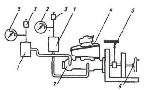Рис. 20. Схема перевірки колісних циліндрів задніх гальм: