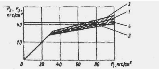 Потім знижують тиск і підключають манометр високого тиску. Дотримуючись зазначених правил, повторюють іспит при тиску 50 кгс/см2 ; 100 і 150 кгс/см2 . Не допускаєтся зниження тиску через вилив рідини через ущільнюючі елементи, з'єднання трубопроводів, штуцера для прокачування рідини або через пори виливки – Допускається незначне (не більш 5 кгс/см2 протягом 5 хв) зменшення тиску, особливо при більш високих тисках, через усадку ущільнювачів.