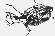 піднімають важіль стояночного гальма на 1–2 зуба сектора;