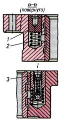 У кожний з трьох накрізних отворів корпусу клапана вставлено по два реактивних плунжери 8 ( див. рис.2.5) з центруючими пружинами 6 між ними.