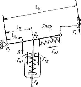 3.1. Кинематическая схема электропневматического контактора с обозначением действующих сил во включенном его состоянии и соответствующих им плеч. 10