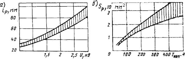 Развернутая длина LР дугогасительных рогов зависит от номинального напряжения аппарата, а площадь их поперечного сечения SР от номинального тока. Выбор значений LР и SР рекомендуется сделать, воспользовавшись графиками зависимостей LР (UНОМ) и SР (IНОМ) на рисунке 4.3.