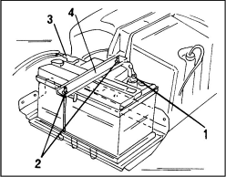 1. Аккумуляторная батарея находится в двигательном отсеке и крепится на консоли, как показано на иллюстр.