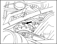 При наличии кондиционера необходимо отсоединить насос гидроусилителя рулевого управления, обеспечив доступ к нижнему болту крепления генератора. Гидравлические шланги насоса не отсоединяются. Насос отложите в сторону.