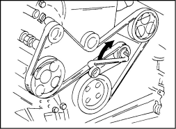 3. Пометьте направление вращения ремня краской на внешней стороне и поверните натяжной ролик накидным ключом направо так, чтобы можно было снять ремень.