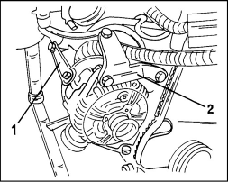 2. Прочие детали снимаются аналогично двигателю 2.0 л с середины 1995 г. выпуска, включая крепление генератора (см. иллюстр.).