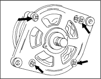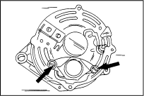 На генераторе фирмы Bosch эта работа может быть выполнена после снятия генератора. Однако для этого необходимо иметь опыт пайки. Отверните с обратной стороны генератора два винта, показанные на иллюстр. стрелками