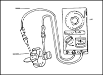 2. Прибор должен показать "бесконечность". Для проверки обмотки статора на обрыв поочередно соедините выводы статора между собой. Если прибор не дает показаний, то это указывает на наличие обрыва (иллюстр.). Сопротивление обмоток должно быть равно 0.10 - 0.11 Ом.