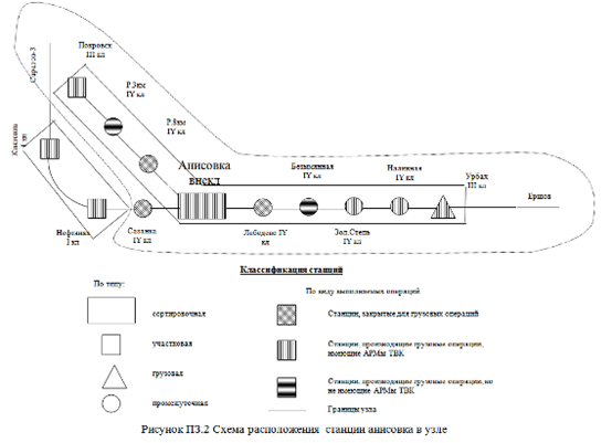 Станция Анисовка работает на 3 направления: Урбах, Саратов, Покровск, а по объему и характеру работы является внеклассной сортировочной станцией (приложение к заданию 3).
