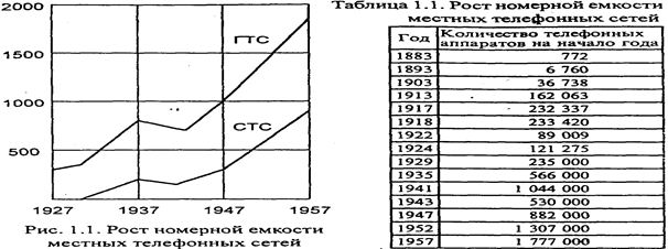 Так или иначе, на протяжении всей своей истории телефонная сеть России и СССР развивалась и росла, оставаясь одной из крупнейших сетей в мире. На рисунке 1.1 и в таблице 1.1 представлены темпы этого развития.