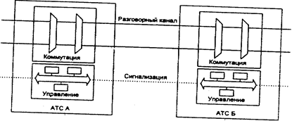 Рис. 1.5. Упрощенное представление сигнализации по выделенному сигнальному каналу (ВСК) с раздельными блоками коммутации и управления