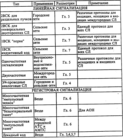 Глава 7 посвящена различным протоколам сигнализации по одному выделенному сигнальному каналу, используемым в сельских телефонных сетях (код «норка», индуктивный код).