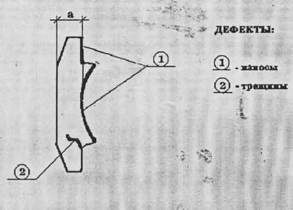 | Разрушение стенок отверстия для клина | Наплавка дуговая Э42 и Э46, порошковой проволокой или в среде защитного газа. | Ширина наружной перемычки должна быть не менее 45 мм |