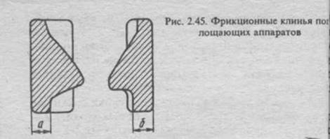 Толщина стенок фрикционных клиньев должна быть не менее 32 мм для аппарата Ш-2-В.Наибольший износ стяжного болта не должен превышать 5 мм.