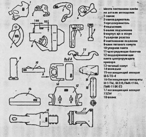 При клеймении ставят на деталях условный номер завода или депо, месяц и год испытания (две последние цифры). Устанавливать детали без клейм не допускается. Регулируют в аппарате выход нажимного конуса.