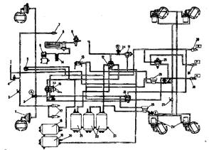 Рисунок 1 – Схема пневматического привода тормозных механизмов автомобилей КамАЗ-5320