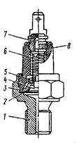 Перед регулированием зазора стопорный болт 8 необходимо ослабить на один-два оборота, после регулировки болт надежно затянуть.