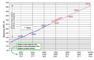 Проведено вимірювання частоти струму і зворотної напруги на електродвигуні і генераторі. Протягом випробувань використовувався динамометр, щоб керувати швидкістю обертання роторів двигуна і генератора. Результати випробування зворотної ЕРС зведені в таблицю 5.2.