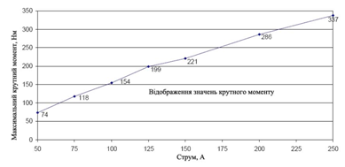 | Струм, А | Максимальний крутний момент, Н∙м |