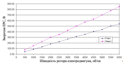 | Зворотня ЕРС електродвигуна (6000 об/хв.) | 540 В |