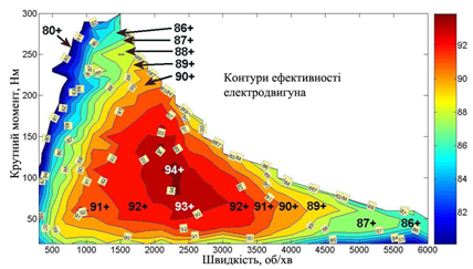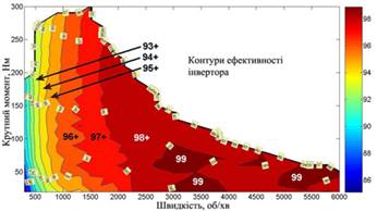 Рисунок 5.1 – Об’єднані контурні карти ефективності системи двигун-інвертор