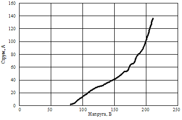 | Струм, А | Напруга, В | Крутний момент, Н·м | Мех. потужність, В | Час випробувань, с |