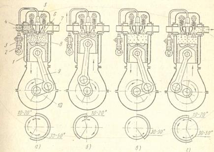 Схема работы четырехтактного двигателя показана на рисунке 1.