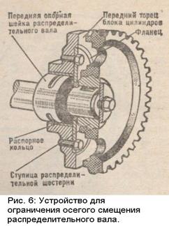 Перемещение вала в продольном направлении ограничивается упорными сталебаббитовыми шайбами, которые расположены по обе стороны первого коренного подшипника или четырьмя сталеалюминиевыми полукольцами, установленными в выточке задней коренной опоры . В местах выхода коленчатого вала из картера двигателя имеются сальники и уплотнители, предотвращающие утечку масла.