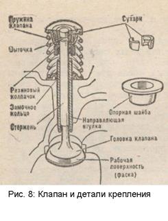 | 7. Повышенный износ стержней клапанов или направляющих втулок | 7.Замените клапаны, отремонтируйте головку блока цилиндров | |