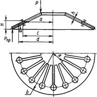 где Рх — осевое усилие, воспринимаемое червяком; F—площадь контакта одного гребня ролика с червяком (сумма площадей двух сегментов, рисунок 52); n— число гребней ролика. Осевая сила