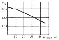Рис. 9. Зависимость коэффициента наполнения от значения тангенциальной составляющей скорости движения заряда