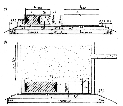 При проектировании грузовых устройств не опорных промежуточных станций следует определить минимальную полезную длину пути у грузовых складов. Она определяется применительно к приведенным схемам на рис. 3.3.