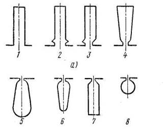 Різні типи і форми пазів електричних машин показані на рис. 4