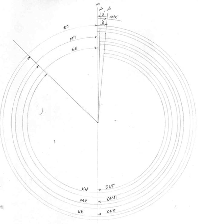 MK = ИK- d02 = 315,0° -(+0,6°) = 314,4°