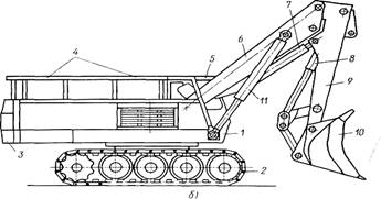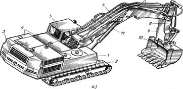 Рис.1.1 Екскаватор ЭО-5123 з устаткуванням зворотньої лопати (а) і екскаватор ЭО-6122А с устаткуванням прямої лопати (б)