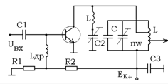 Выходной каскад передатчика будем выполнять по однокаскадной схеме усилителя мощности с общим эмиттером. Однокаскадная схема применяется из-за простоты исполнения, а также исходя из достаточно низкой величины выходной мощности.