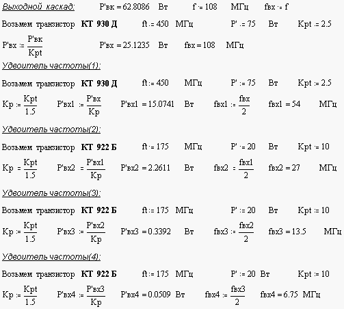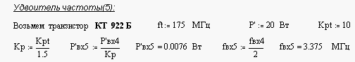 Для получения такого коэффициента умножения будем использовать пять удвоителей частоты, так как это позволит нам получить заданную мощность в нагрузке без использования очень мощных транзисторов и дополнительных каскадов усиления.