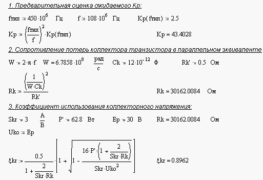 P~ = 37 Вт - выходная мощность. f = 108 МГц - рабочая частота.