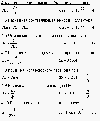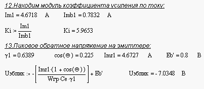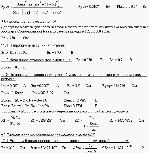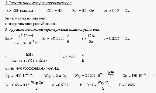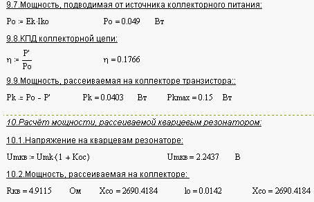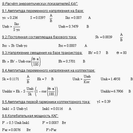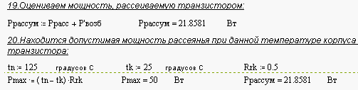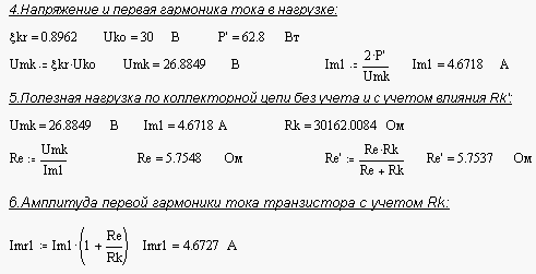 Вычислим колебательную мощность выходного каскада, для этого зададим значения следующих величин: