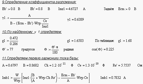 При достаточно высокой добротности контуров умножителя его входное и выходное напряжения имеет форму, близкую к гармонической. Но в общем случае ток и напряжение на входе транзистора в режиме с отсечкой имеют негармоническую форму, и это усложняет расчёт.