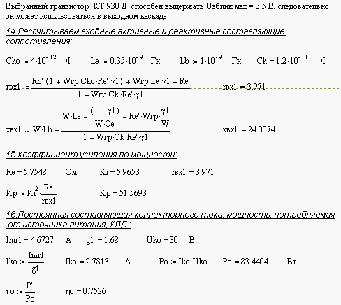 КТ 930 Д : fт = 450 МГц ; Р~ = 75 Вт ; Кр = 2.5