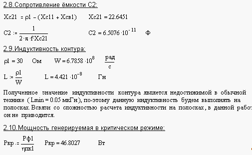 Мы взяли схему с последовательным питанием. Для уменьшения влияния нагрузки на параметры контура и согласования контура с VT мы нагрузку подключаем частично. Можно добавить фильтр " пробка" в коллекторную цепь, для уменьшения влияния первой гармоники на параметры контура. После умножителя ставим выходной каскад – ГВВ с резонансной схемой согласования в коллекторной цепи. Генератор с внешним возбуждением относится к классу усилителей высокой частоты. В отличие от малосигнальных усилителей ВЧ ГВВ имеет дело с большими уровнями сигналов, действующими на его входе и выходе, и работает как в линейном, так нелинейном режимах. В этой связи ГВВ принято характеризовать рядом энергетических показателей. К ним относятся выходная колебательная мощность, мощность, потребляемая от источника питания, мощность рассеяния по выходному электроду, коэффициент полезного действия по выходному электроду, коэффициент усиления по мощности и ряд других. Качество генератора во многом зависит от уровня достигнутого КПД и Кр при заданном уровне выходной мощности. Поэтому ГВВ можно рассматривать как устройство, осуществляющее преобразование энергии источника питания в ВЧ энергию с достаточно высоким КПД и управляемое внешним ВЧ сигналом. В ГВВ с избирательными цепями согласования можно реализовать три возможных режима работы: недонапряжённый, критический, перенапряжённый. Если напряжение источников питания, смещения и амплитуды возбуждения неизменно, то требуемый режим работы ГВВ достигается подбором нагрузки, по выходному электроду. При энергетическом расчёте ГВВ в критическом режиме на заданную мощность одним из параметров, которым приходится задаваться, является угол отсечки. Его значение можно выбирать из интервала от 0 до 180 градусов. Однако при разных значениях углов отсечки получаются различными такие важные характеристики ГВВ как электронный КПД, Кр, насыщенность выходного тока высшими гармониками и ряд других. Известно, что усилительные свойства АЭ наиболее высоки в классе А. При выборе угла отсечки из интервала 120 – 180 усилительные свойства АЭ уменьшаются, но незначительно. Однако электронный КПД ГВВ получается при этом невысоким и лишь немного превышает 50%. При выборе угла отсечки < 120 начинает расти требуемая амплитуда напряжения возбуждения и заметно снижается коэффициент усиления по мощности. Одновременно увеличивается вес высших гармоник в импульсной последовательности выходного тока. Максимум амплитуды второй гармоники наблюдается при угле отсечки 60 градусов, а третьей – при 40 градусов. Изменение веса третьей гармоники имеет колебательный характер, и при угле отсечки 90 градусов её вес равен нулю. Одновременно с уменьшением угла отсечки наблюдается рост электронного КПД. Максимум его получается при угле отсечки (50 - 60) градусов, а затем идёт резкое снижение. При угле отсечки < 90 градусов начинает быстро убывать Кр и увеличивается требуемая мощность возбуждения.