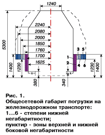 Негабаритными железнодорожники считают грузы, подлежащие перевозке в пределах сети железных дорог колеи 1520 (1524) мм на общих условиях, не превышающие общесетевой габарит погрузки (рис.1).