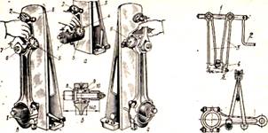 На багатьох ремонтних підприємствах загального призначення для перевірки шатунів на вигин і скручування використовують індикаторний пристрій типу КИ‑724 (рис. 72). Цей пристрій універсальний, він дає можливість контролювати шатуни двигунів різних марок.