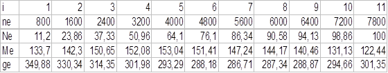 По данным расчетов строятся графики зависимостей Ne , Me , ge .