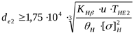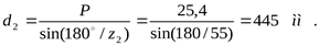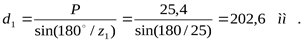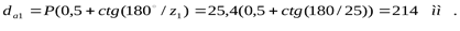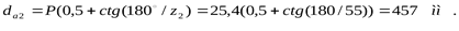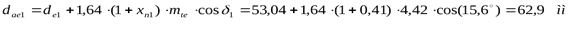 Диаметр внешней делительной окружности вычисляется по формуле: